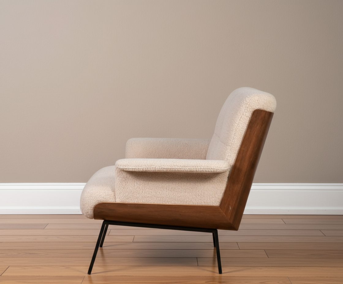 • Seat & Backrest: High-density foam with boucle-style fabric upholstery