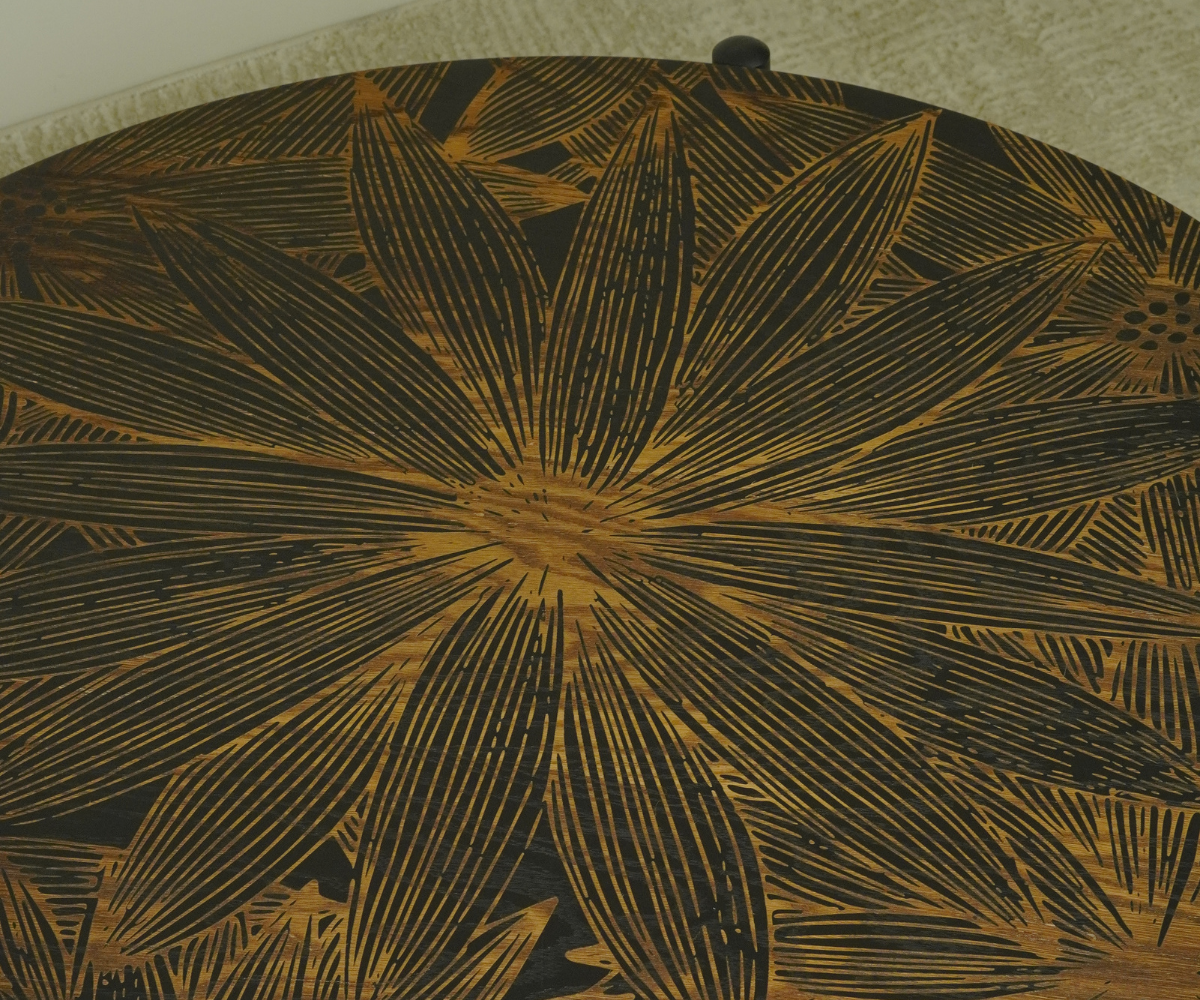 Decorative Veneer: The highly ornamental, radial pattern on the top is the defining feature, offering a dramatic centerpiece.